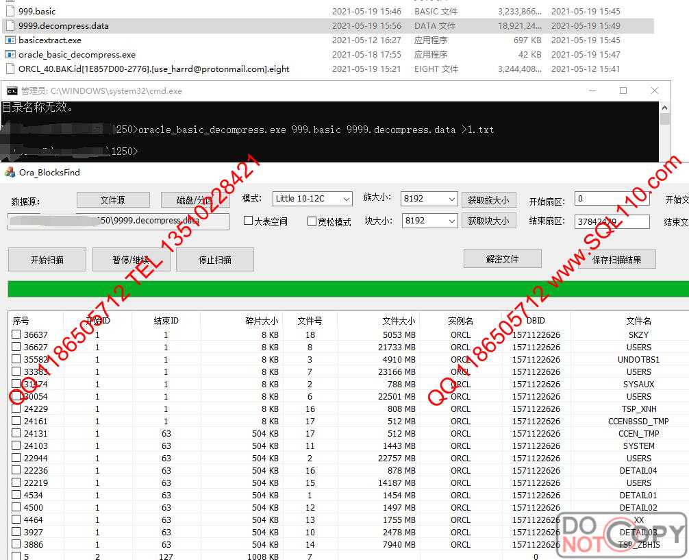 修复结果  从加密的rman备份提取basic压缩包,使用极佳basic解压缩工具提取压缩数据,使用极佳oracle碎片恢复工具
