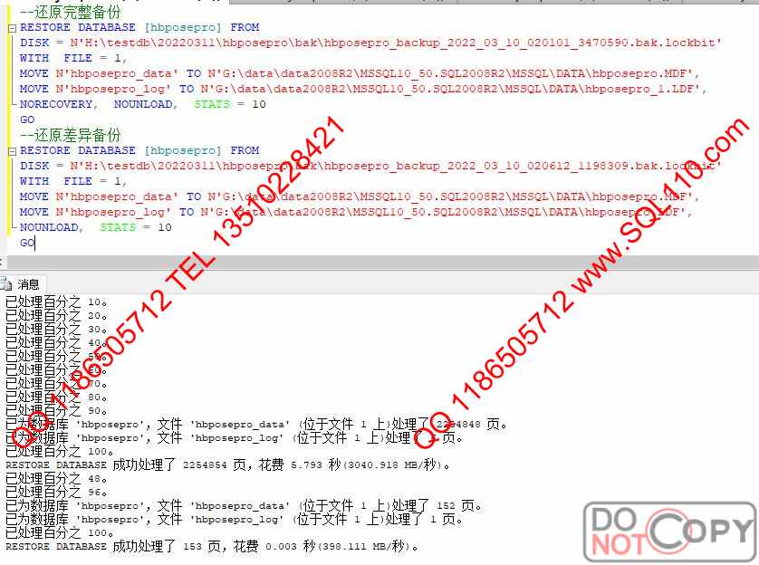 修复结果 从.lockbit勒索病毒加密的mdf和BAK文件修正加密快 还原数据库完成恢复,数据恢复率100%