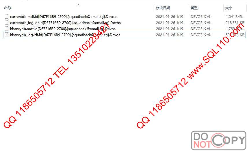 SQL中勒索病毒解密 .DEVOS 病毒解密恢复 数据库中.DEVOS 解密恢复 服务器被加密解密恢复