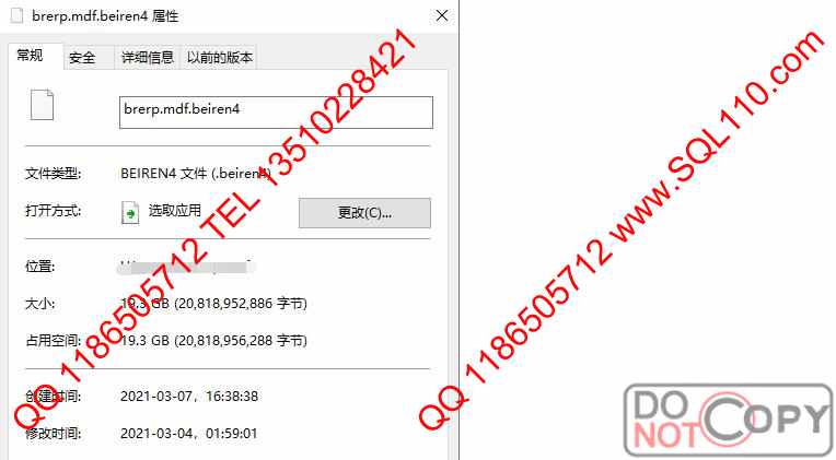 SQL中勒索病毒解密 .beiren4 病毒解密恢复 数据库中.beiren4 解密恢复 服务器被加密解密恢复