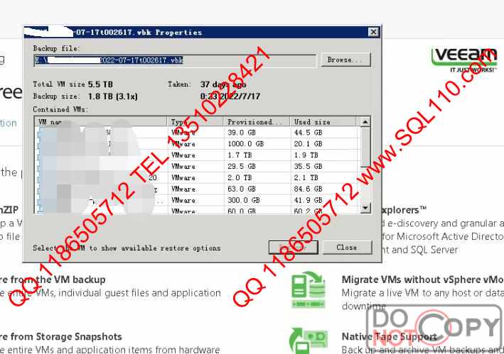 修复结果 使用SQL110veeambackupfix修复工具处理被lockbit2.0 病毒加密的vbk备份文件, 恢复率100%. veeam直接可从修复后的