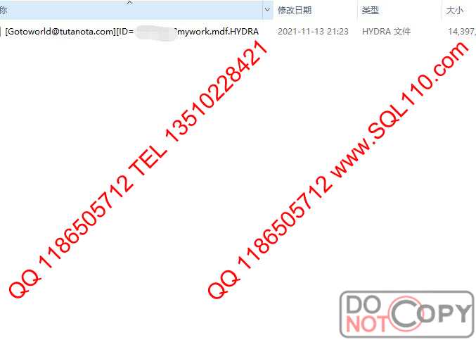 .HYDRA勒索病毒解密 服务器中勒索病毒解密 数据库中.HYDRA勒索病毒解密