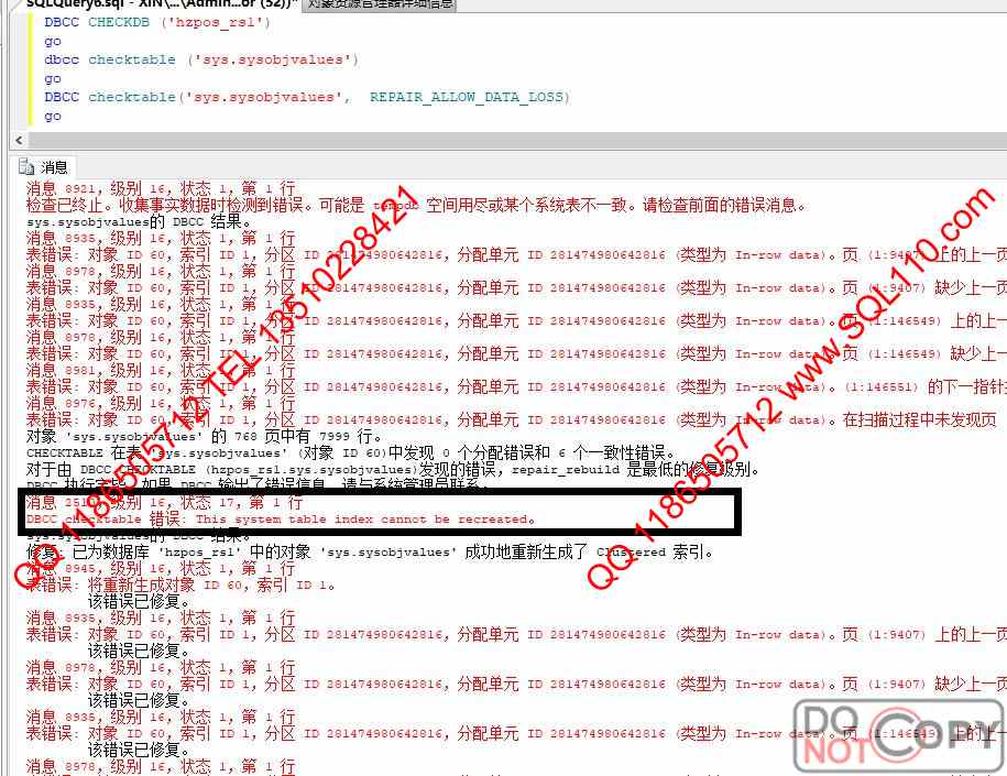 检查已终止。收集事实数据时检测到错误。可能是 tempdb 空间用尽或某个系统表不一致。请......
