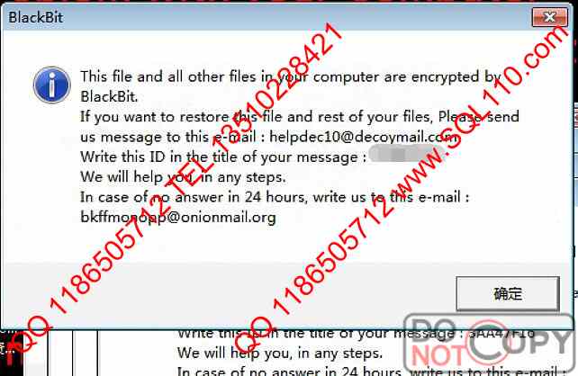.BlackBit勒索病毒解密 SQL数据库中勒索病毒解密 服务器中勒索病毒.BlackBit解密
