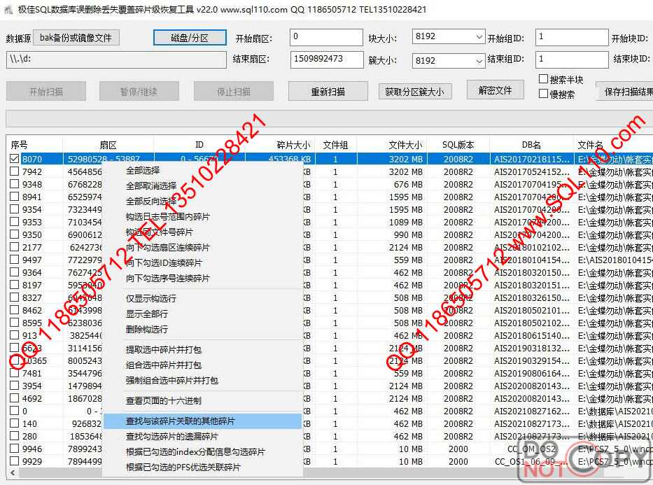 SQL数据库丢失恢复 SQL数据库碎片恢复 SQL数据库误格式化恢复...