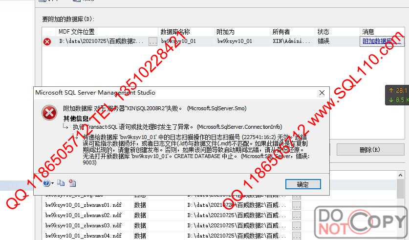 SQL数据库无法附加 附加报错9003 当前命令发生严重错误