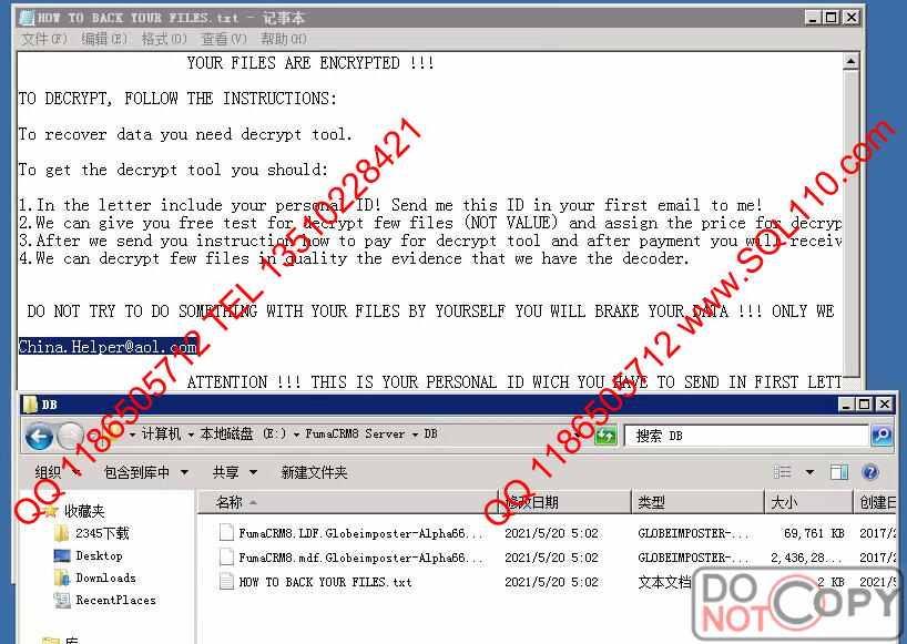 .Globeimposter-Alpha666qqz勒索病毒解密恢复 服务器中勒索病毒解密 数据库中病毒解密.Globeimposter-Alpha666qqz