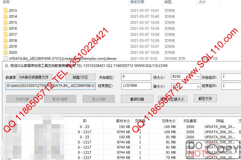 SQL数据库丢失恢复 MDF NDF文件丢失恢复 mssql误删除数据库恢复...