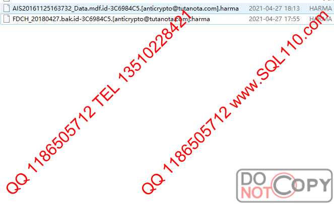 .HARMA勒索病毒解密恢复 服务器中毒解密.HARMA 数据库中病毒解密.HARMA