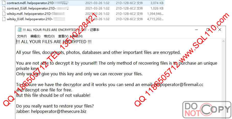 .helpras勒索病毒解密 服务器中毒解密.helpras SQL数据库中病毒解密.helpras