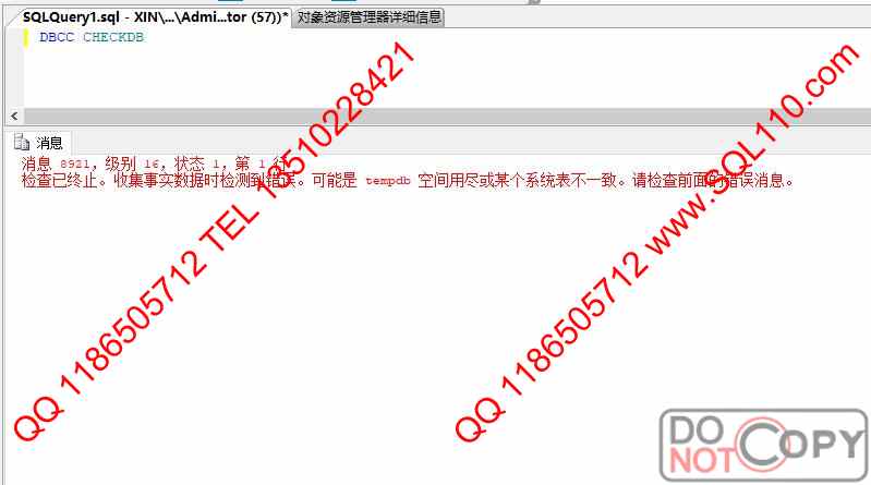 消息 8921,级别 16,状态 1,第 1 行 检查已终止。收集事实数据时检测到错误 ......