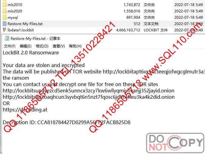 mysql数据库中勒索病毒解密恢复 mysql数据库被lockbit2.0加密恢复 lockbit2.0勒索病毒解密恢复