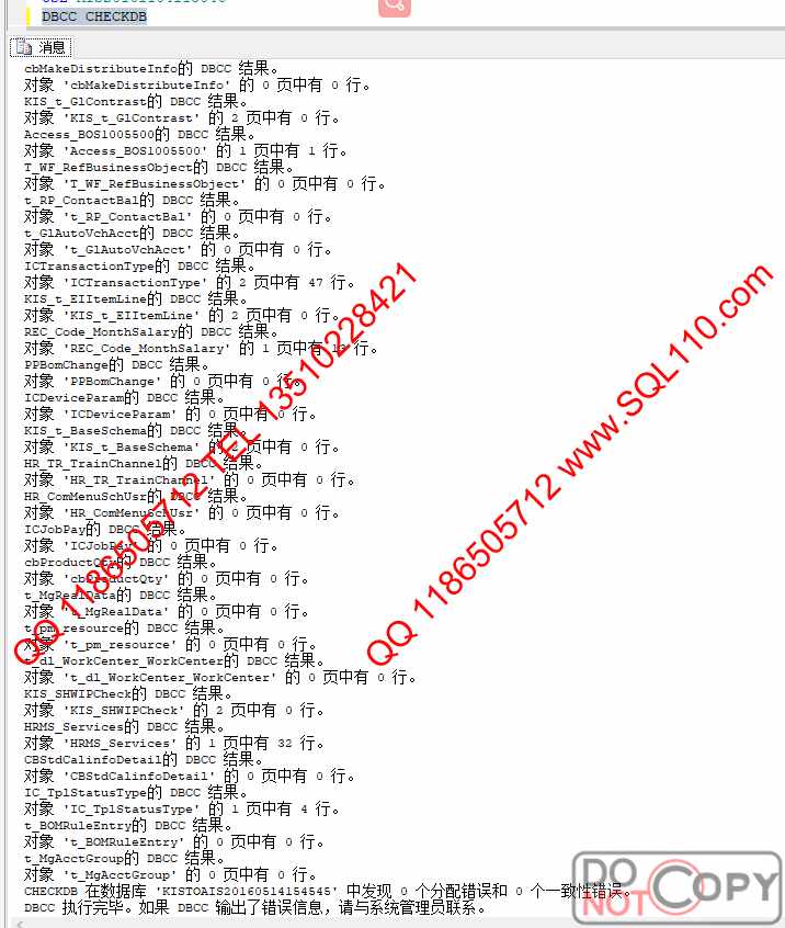 故障检测  DBCC CHECKDB检测数据库提示