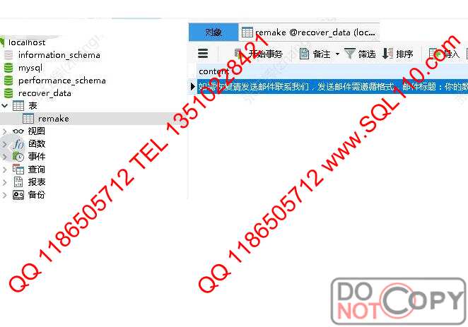 故障类型 服务器被黑导致mysql数据库被删除,黑K留下一个recovery_data库 内有remake表 表内容就是索要