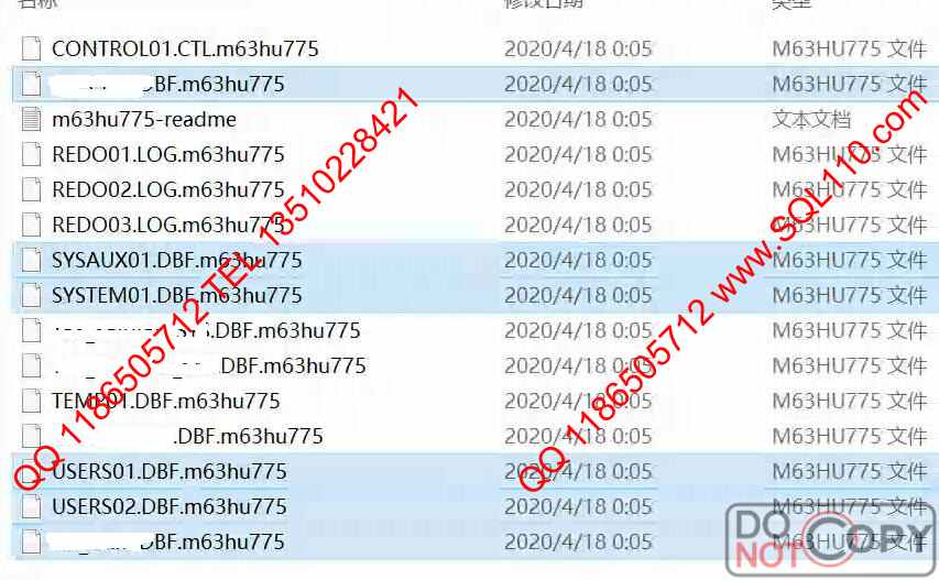 ORACLE数据库中勒索病毒解密.m63hu775 病毒解密恢复 数据库中.m63hu775 解密恢复 服务器被加密解密恢复