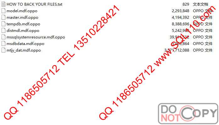 故障检测 服务器中勒索病毒.oppo所有文件被加密.oppo需要恢复数据库。