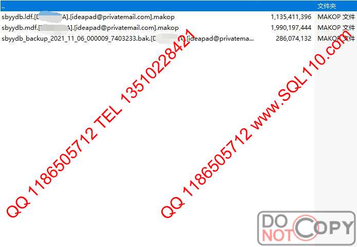 故障检测 服务器中勒索病毒 所有文件被加密MAKOP需要恢复数据库。