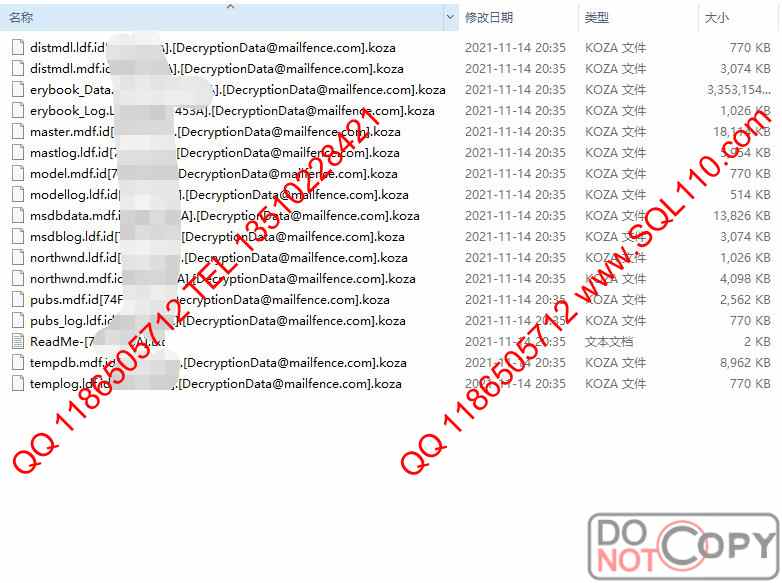 故障检测 服务器被.Koza勒索病毒加密,所有文件被加密,需要恢复ERP数据库