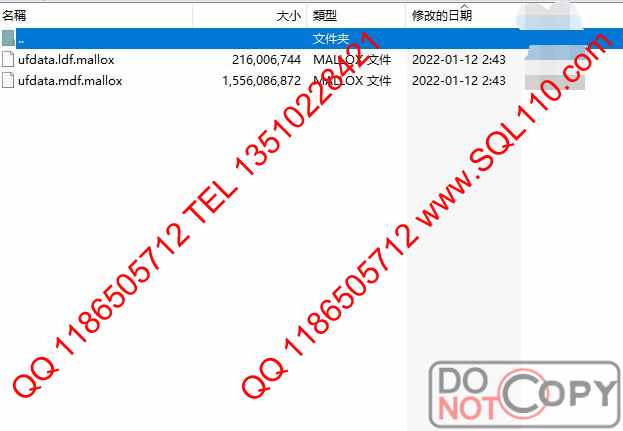 故障检测 服务器中勒索病毒 文件被加密 数据库被添加扩展名.mallox 需要恢复U8数据库