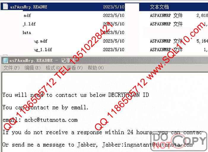 经过分析 该.asPAxnMrp勒索病毒加密的数据库完整度较高.asPAxnMrp.README