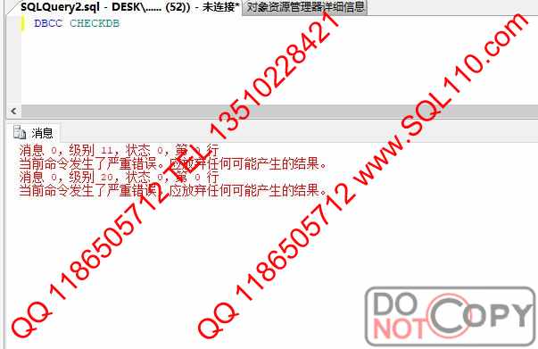 修复结果 修正不一致的系统表完成恢复,重新附加数据库DBCC CHCEKDB检测正常完成。完整度100%