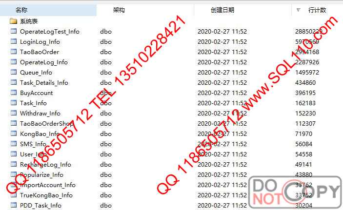 修复结果 数据库压缩发来后 直接回滚DROP命令 使用极佳SQL数据库修复大师恢复所有表数据 完成恢复。