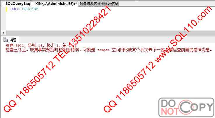 检查已终止。收集事实数据时检测到错误。可能是 tempdb 空间用尽或某个系统表不一致。请检查前面的错误消息。