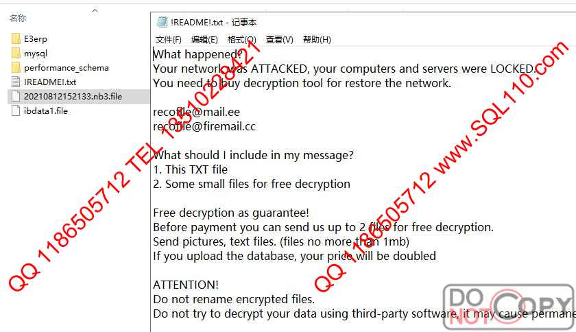 .file勒索病毒解密 数据库中勒索病毒解密 服务器中.file勒索病毒解密