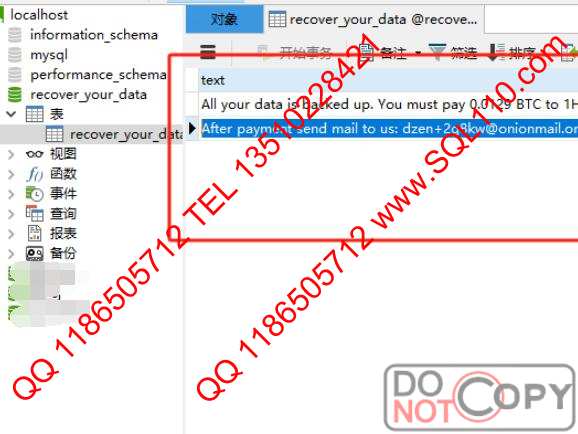 recover_your_data表信息内容是 索要钱财信息。