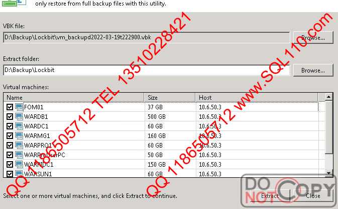 修复结果 使用sql110veeambackupfix修复工具修正被加密的vbk和vib文件.提取vbk内的虚拟机