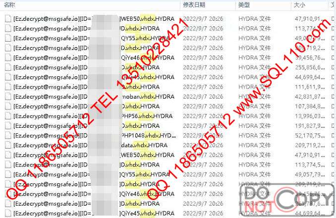 .HYDRA勒索病毒解密 服务器中毒解密.HYDRA hyper虚拟机vhdx文件中毒.HYDRA解密