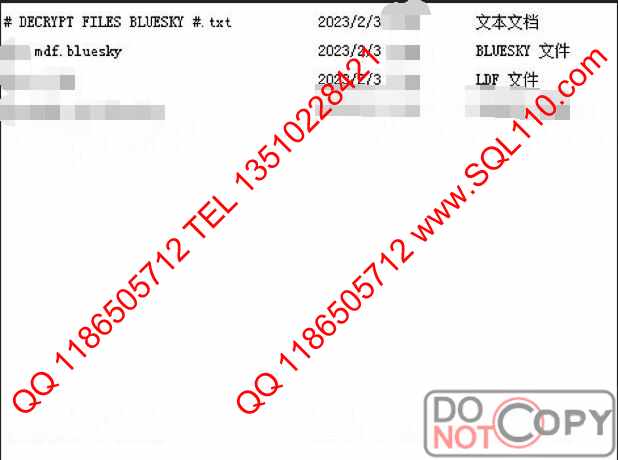 .bluesky勒索病毒解密 服务器中毒解密.bluesky 数据库中勒索病毒解密恢复.bluesky